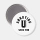 Avez-vous un doctorat en Etre-A-Douleur-Dans-Le-Fond ? Si oui, ce Funny Annoying U (You) Magnet en noir est parfait pour utiliser autour de frères et soeurs ou toute autre personne que vous aimez ennuyer! Avec une atmosphère de souvenirs d'université, cette conception typographique humoristique ferait un grand cadeau pour vous-même ou pour n'importe quel nombre de personnes ennuyeuses que vous pourriez connaître. Facile à customiser, ajoutez l'année de votre naissance ou d'autres textes personnalisés de votre choix. Cliquez sur le bouton "Customiser" pour trouver d'autres options de personnalisation.