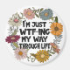 "Je suis juste en train de me frayer un chemin dans la vie", avec du texte noir et une couronne florale margueuse.