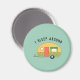 Funny frigo aimant a "I sleep around" texte personnalisable avec jolie bande-annonce de camp RV de style rétro jaune et vert sur arrière - plan vert. Parfait pour ceux qui aiment le style de vie du camping RV dans les campings, les parcs de camping et les endroits éloignés du réseau - où le stationnement dans plusieurs endroits pendant des jours, des semaines ou des mois est juste un mode de vie.