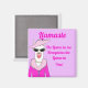 L'aimant Drôle Pink llamaste Saying est un mignon aimant amusant qui présente une Lady Llama drôle en tenue rose partageant ses petits trucs de sagesse sur un aimant carré.