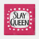 Un design typographique amusant et mignon qui dit "Slay Queen". C'est du texte noir sur un rectangle blanc avec des points blancs amusants autour, le tout sur un arrière - plan magenta rose chaud.
