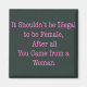Dans le texte rose il est écrit : "Ce ne devrait pas être illégal d'être une femme, après tout ce que vous venez d'une femme."
