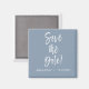 Dusty Blue et blanc Hand Lettered Script Enregistrer l'aimant de date. Le texte de cet aimant de script de brosse écrit à la main peut être mis à jour et customisé avec votre nom.