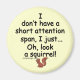 "Je n'ai pas une courte durée d'attention, je... Regarde un écureuil !" Drôle de dire / de citer à propos d'être souvent distrait et/ou oublieux. Texte noir / lettres avec un arrière - plan beige clair / marron que vous pouvez changer à n'importe quelle couleur. —