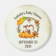 Baby shower événement enregistrer l'aimant date avec un mignon écureuil debout derrière quelques citrouilles orange aquarelle. Une couronne de feuillage les entoure d'une feuille de chêne et de fleurs d'orange et d'autres sprigs et feuilles. L'Arrière - plan est de couleur crème, avec un aspect vieillot rugueux autour des bords.