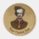 Terrifié Edgar Allan Poe regardant un insecte de l'or grimper sur sa cravate. Croquis de stylo à encre colorée. Texte personnalisé sur le cercle.