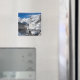 Aimant photo avec la célèbre église Saint-Sébastien dans la neige, adossée par les hautes Alpes avec un pont et un petit ruisseau à Ramsau b. Berchtesgaden, près de l'Autriche en Allemagne en hiver.