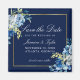 Aimant Élégant Bleu Marine et Or Fleurs Save the Date