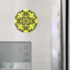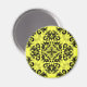 Beau damas noir sur arrière - plan jaune. Montré ici sur un aimant rond.