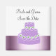 Un joli design avec un gâteau mariage violet avec des fleurs en blanc avec des centres verts et de la glace douce blanche. Une bordure de violet ombragé. Customisez avec les noms et la date souhaitée.