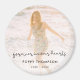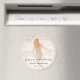 Un aimant frigo moderne et minimaliste pour funérailles photo complète pour garder la vie de votre être aimé dans un style minimaliste propre et simple design avec une police de script manuscrite élégante et un arrière - plan de pêche pastel doux. Le modèle design peut être facilement personnalisé avec votre propre photo et texte pour créer un hommage spécial pour les funérailles, le mémorial ou la célébration de la vie de votre être aimé. L'image montrée n'est à des fins d'illustration que pour être remplacée par votre propre photo. L'image de l'espace réservé montre une jeune femme heureuse aux cheveux longs et ondulés portant une élégante robe d'été pastel et florale chic, debout dans la mer au coucher du soleil sur une plage de sable dans les vagues peu profondes.