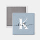 Cet aimant carré bleu 2" simple et élégant avec votre prénom dans une police de script tendance en noir et votre première initiale dans une police casquette moderne en blanc est parfait pour vous. C'est design, tendance et pourtant très classique. Il aura l'air fabuleux sur votre meuble, réfrigérateur, bureau.