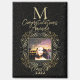Congratulation Class of and Your Photo in Elegant Gold Foil Look Scrollwork Script on Black. Words can be change to suit your event.