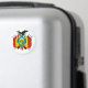 Armoiries de Bolivie. Les armoiries de Bolivie sont entourées d'un cartouche central entouré de drapeaux boliviens, de mousquets, de branches de lauriers et d'un condor andin au sommet. Le cartouche central a une frontière avec dix étoiles dans le fond, qui symbolise les neuf départements et l'ancienne province Litoral qui a été repris par le Chili en 1879, et le nom de la Bolivie dans la section supérieure. A l'intérieur de la frontière, la montagne argentée Potosí — reconnue par une entrée de mine — est représentée, avec un soleil se levant au-dessus, et avec un alpaga debout à côté d'un palmier et un peu de blé. L'alpaga se dresse sur une plaine qui contraste avec la montagne. La montagne et son contraste avec les plaines sont indicatifs de la géographie de la Bolivie. L'alpaga est l'animal national, et les objets qui l'entourent symbolisent les ressources de la nation. Autour du bouclier il y a trois drapeaux boliviens de chaque côté. Derrière, deux paires de fusils croisés symbolisent la lutte pour l'indépendance. A côté des mousquets il y a une hache et un capuchon rouge Phrygien, qui est le symbole de la liberté et de la liberté. Les branches de laurier sont symboliques de la paix, et le condor perché sur le bouclier symbolise une volonté de défendre la nation et sa liberté. Dans certaines représentations de ces armoiries, les deux paires de mousquets sont remplacées par deux canons. D'autres représentations ont aussi des symboles plus réalistes dans le bouclier.