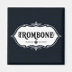 Trombone en texte décoratif contre un emblème blanc ou noir est un design cadeau unique pour les musiciens en laiton bas, les professeurs de musique et les étudiants en concert et groupe de marche.