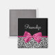Un aimant empreinte de léopard noir et blanc à la mode avec un ruban rose foncé et vivace attaché à un joli arc girly. Personnalisez ce design chic et élégant pour motif animal en ajoutant le nom de votre fille ado. Image imprimée plate, pas le ruban réel.