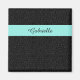 Un élégant noir sur aimant empreinte de léopard noir avec une bande d'aqua. Ce motif animal chic et preppy peut être personnalisé en ajoutant le nom d'une femme moderne.