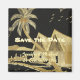 Personnalisé enregistrer la date mariage aimant avec palmier tropical et maison de style Bali. Design élégant noir et beige. Personnalisez le modèle texte pour les noms de mariée et mariée et la date de l'occasion spéciale.