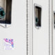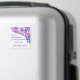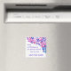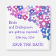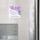 Un joli aimant de frigo Save the Date, aux fleurs roses, bleues et violettes, d'un collage de papier peint à la main par Judy Adamson