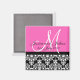 Aimant Enregistrer La Date Monogramme Noir/Rose Damask Tr