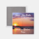 Magnet Réservez la date sur mesure avec des roses rouges. Ajoutez votre nom et votre date de mariage pour que vos invités mariages sachent que cette date est réservée à votre mariage. Ce design présente un beau coucher de soleil.