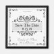 Enregistrer l'aimant Date pour le réfrigérateur affiché. Celui-ci est carré et présenté dans un thème vintage noir, blanc et gris argenté. Texte préformaté pour vous permettre de personnaliser avec les noms et la date. Customisez ce point et changez le texte à votre place. Image stock freepik.com