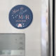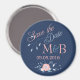 Enregistrez l'aimant Date avec du boho, un design floral, des monogrammes et la date dans les couleurs blush et bleu.