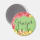 Un aimant Refrigerator rond classique qui affiche l'illustration de l'épice de gingembre avec racines, fleurs, feuilles et inscription. Idéal pour le décor de cuisine ou les conteneurs magnétiques.