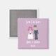 Illustration Sweet Bride & Groom sur un arrière - plan lilas sur un aimant "Save the date". Modifiez le texte pour ajouter les noms de la mariée et du marié et la date du mariage. Tout le texte est personnalisable - beaucoup de polices et de couleurs différentes à choisir. Une excellente façon de rappeler à vos invités votre date mariage. Visitez mon magasin Molly Sky pour plus de divertissement et de mignonettes choses mariages et beaucoup de produits pour tout le monde - même le chien de famille!