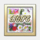 Aimant avec le mot HOPE écrit sur un bouquet de fleurs avec un cadre de couleur or Il est artistiquement créé.