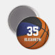 Cette équipe colore l'aimant de basketball pour les filles ou les garçons avec l'image réaliste d'un basketball qui a deux panneaux recolorés - un bleu et un noir - facilement personnalisable avec le nom du joueur et le numéro de maillot - par katz_d_zynes