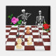 Deux squelettes tenant des roses danser sur un échiquier. Est-ce du maté de contrôle ou pas ? Un cadeau idéal pour votre joueur d'échecs préféré ou achetez-en un pour vous-même et vous habillez bien pour votre prochain match.