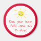 Partagez un petit humour avec cet aimant amusant qui dit "Est-ce que votre enfant intérieur peut sortir jouer" avec un soleil souriant et une écriture de crayon amusante.