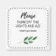 Une façon élégante de rappeler à vos clients de location de vacances d'éteindre les lumières et l'AC au moment de leur départ. Placez simplement cet aimant sur votre réfrigérateur ou près/sur la porte d'entrée.