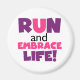 Si vous aimez courir, courir 5Ks, 10Ks, demi-marathons ou marathons, vous adorerez ce texte coloré en violet et rose qui lit Run and Embrace Life ! Cours et Embrassez des T-shirts, des tasses, des sacs, des cartes, des autocollants, des porte - clés, des mousepads, des coques iphone, des magnets et bien plus encore !