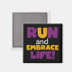 Si vous aimez courir, courir 5Ks, 10Ks, demi-marathons ou marathons, vous adorerez ce texte coloré en violet et jaune qui lit Run and Embrace Life! Courez et Embrace Vie T-shirts, sweat - shirts à capuche, magnets, boutons, cartes, autocollants, porte - clés, et beaucoup d'autres articles pour les coureurs qui aiment un design de course brillant et coloré!