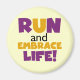 Si vous aimez courir, courir 5Ks, 10Ks, demi-marathons ou marathons, vous adorerez ce texte coloré en violet et jaune qui lit Run and Embrace Life! Courez et Embrace Vie T-shirts, sweat - shirts à capuche, magnets, boutons, cartes, autocollants, porte - clés, et beaucoup d'autres articles pour les coureurs qui aiment un design de course brillant et coloré!