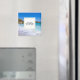 Un aimant événementiel avec une photo d'une plage sur l'île grecque de Crète. Une belle plage tropicale bleue au surf mousse. Merveilleuse destination de voyage tranquille.