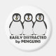 Facilement distrait par les pingouins. Trois mignonnes et adorables pingouins à manchots dessin d'illustration graphique en noir et blanc. Drôle à dire/Slogan pour les amateurs de pingouins. -Tous droits réservés.