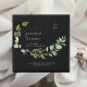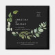 Faire-part de mariage moderne botanique aquarelle. Carré. Texte blanc. Aimant. Fond noir.