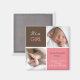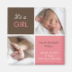 Baby Girl faire-part avec un design de bloc de couleur chic en rose et marron. Téléchargez vos photos dans l'espace prévu à cet effet et entrez les informations de votre bébé.