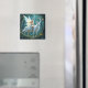 Fairytale magnet. A beautiful fairy in white riding on a white magical deer. Pretty fairy tale enchanted forest.