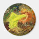 Magnet représentant la peinture d’Arthur Wardle A Fairy Tale (1895). Une jeune femme aux longs cheveux rouges porte une robe jaune et dort dans une forêt verte à côté du chevreuil, du lapin et du paon. Un beau cadeau pour les amateurs de contes de fées et les amateurs d'art anglais !