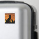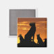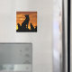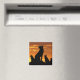 Une mère guépard et ses trois petits s'installent pour la nuit au coucher du soleil derrière eux. Leurs silhouettes se dressent nettement contre les couleurs éclatantes du coucher du soleil. L'art informatique de Kathie Miller.