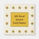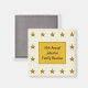 Créez un souvenir unique pour votre prochaine réunion de famille avec un aimant de réfrigérateur. Ces magnets carré ont un cadre d'étoiles dorées. Vos informations d'événement apparaissent dans un rectangle doré au centre. Tout le texte peut être customisé rapidement et facilement.