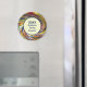 Faites preuve de dynamisme et de luminosité pour votre prochaine réunion de famille avec cet aimant de conservation. L'arrière - plan est un tourbillon de couleur vif avec un grand cercle solide pour votre texte. Personnalisez facilement et rapidement cet aimant pour un souvenir amusant et bon marché pour votre prochain événement familial.