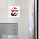 Three primary colors balloons and black and text that reads "Feisty 65" on a magnet.