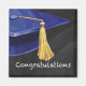Vous ou quelqu'un que vous connaissez êtes diplômé ! Yay ! Envoyez vos félicitations avec notre design élégant avec notre art original d'une casquette de graduation bleue avec un moule jaune contre un arrière - plan noir texturé et le mot, Félicitations sur le fond. Conception personnalisée disponible.
