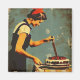 Si vous aimez les designs vintages, celui-ci sera parfait pour vous. Il montre une femme coupant un gâteau.