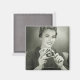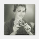 Femme souriante tenant des cartes à jouer en studio, (B&W), portrait | George Marks | AssetID : 57520357